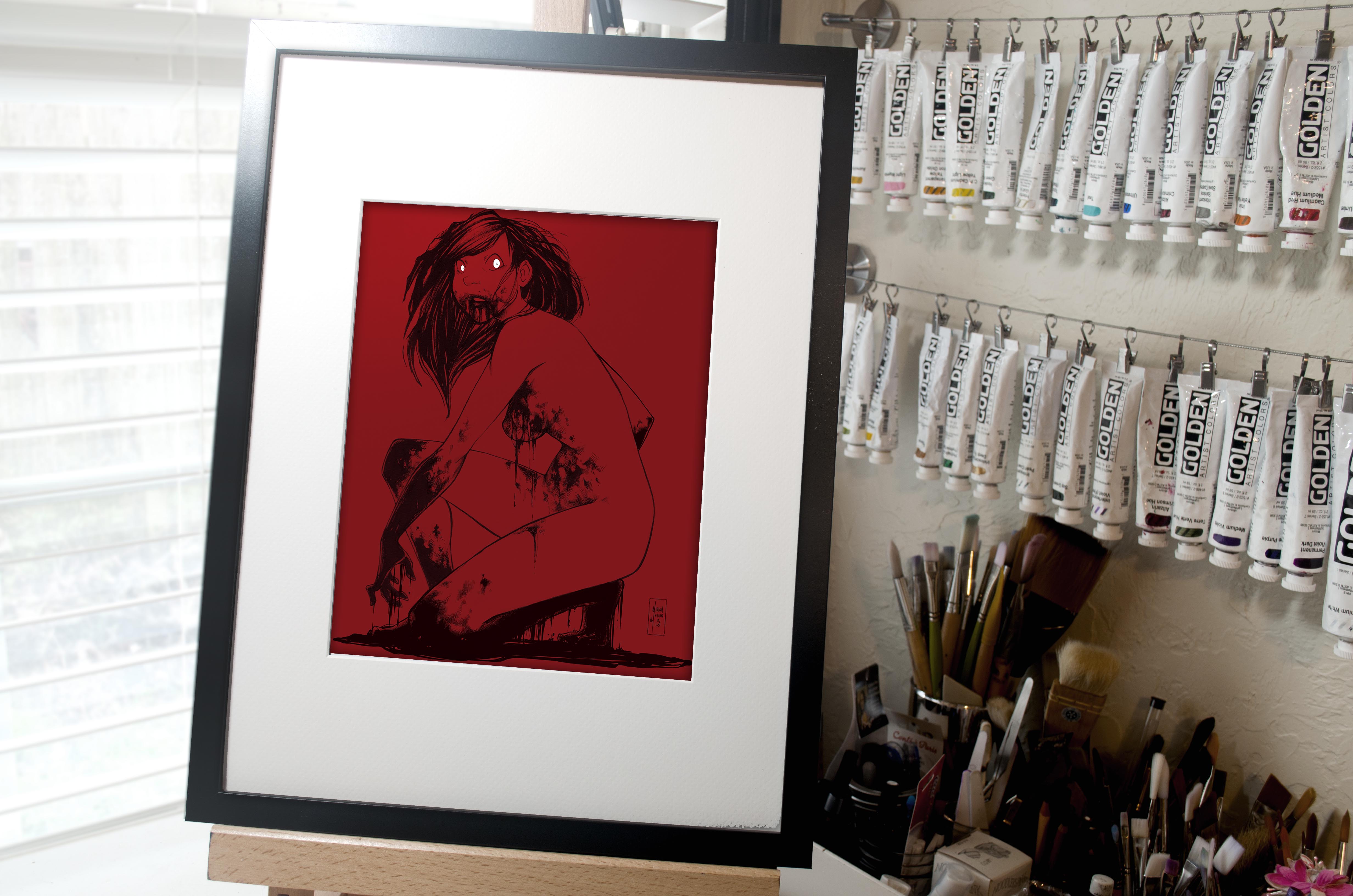 Original artwork printed on 8.5x11 semi-gloss photo paper. Hand signed on front. Protective clear bag and acid free backing provided.