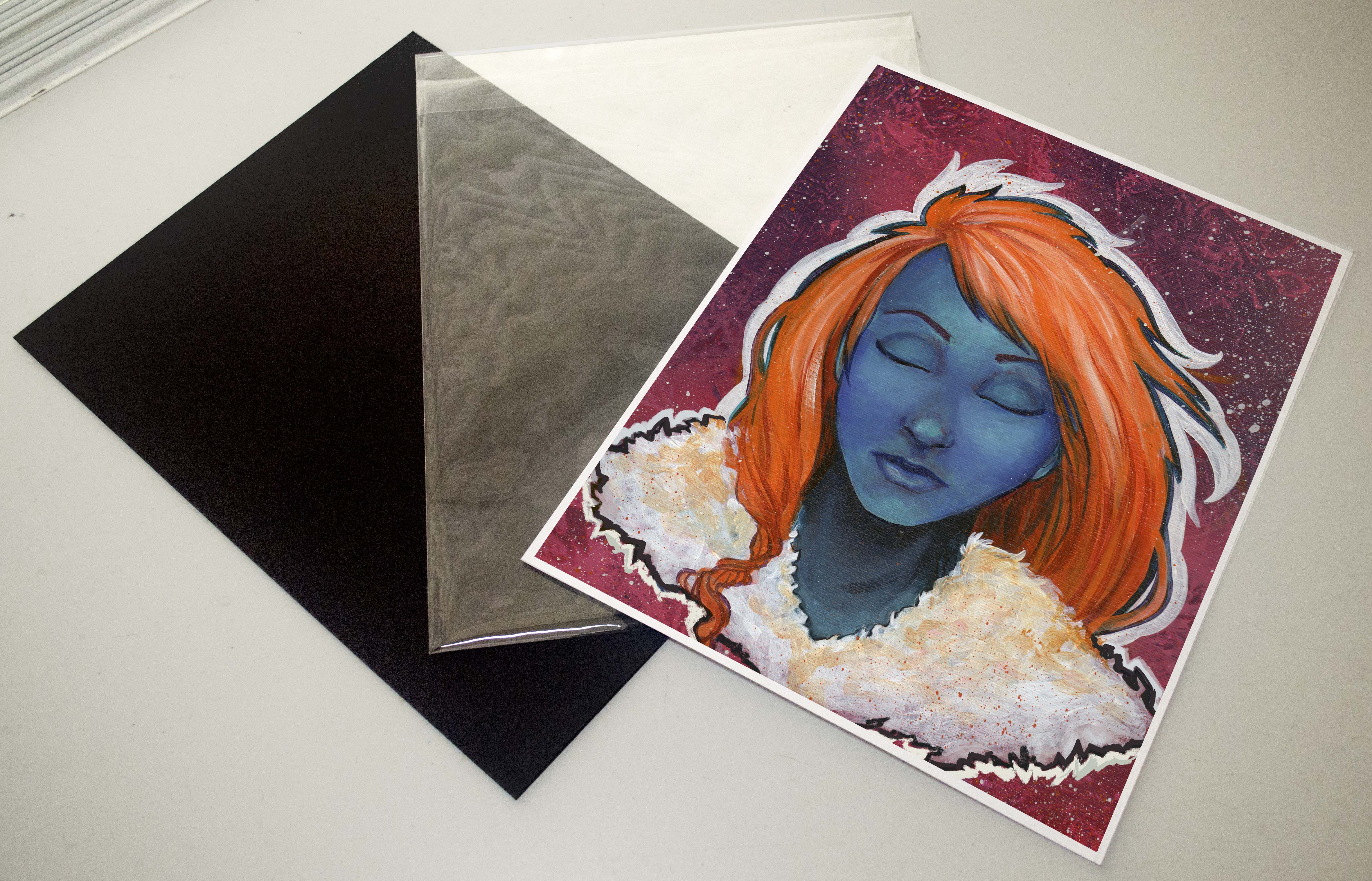Original artwork printed on 8.5x11 semi-gloss photo paper. Hand signed on front. Protective clear bag and acid free backing provided.